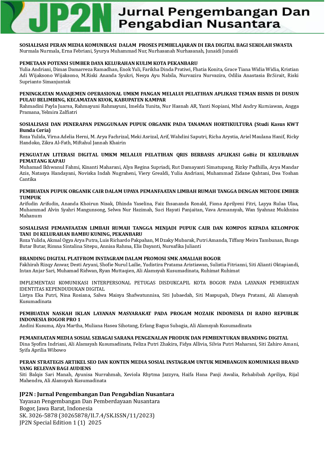 Melati, L., & Kusumadinata, A. A. (2025). Aktivitas Jurnalis Di Instagram Sebagai Kanal Distribusi Berita@ Ceklissatu. JP2N: Jurnal Pengembangan Dan Pengabdian Nusantara, 2(2), 222-229.DOI: https://doi.org/10.62180/81fwk689